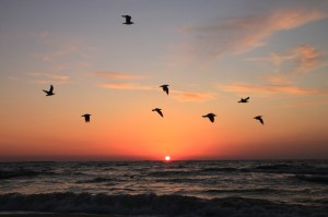 Câțiva pescăruși zgomotoși îi anunță sosirea într-un dans pestriț, desfășurat chiar pe marginea dintre țărm și larg, în momentul în care lumina și întunericul își strâng mâinile în semn de „la revedere”.